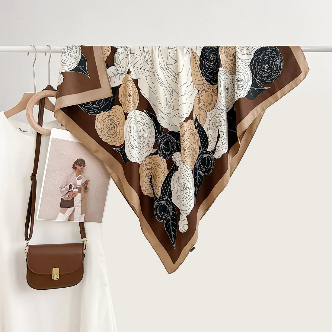 High-profile High-grade Korean Color Matching Floral Printed Scarf 90X90 cm