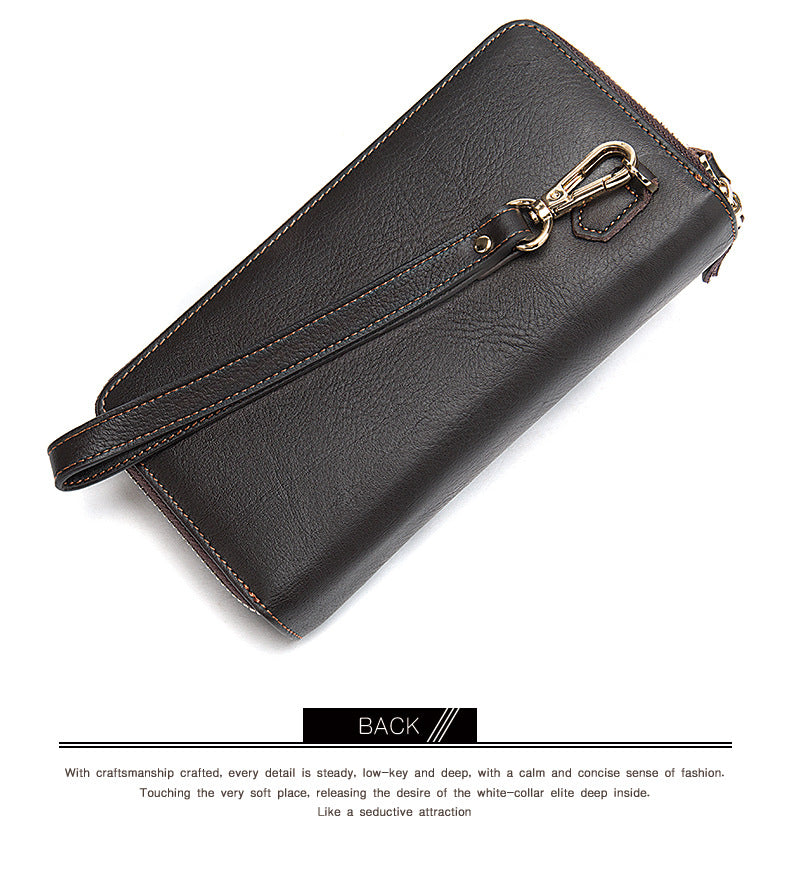 Men's Double Zipper Wallet Long First Layer Cowhide Large-capacity Handbag