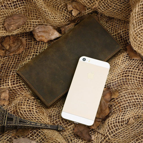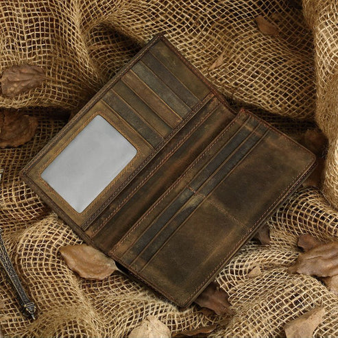 Men'S Wallet Retro Crazy Horse Leather Long Vertical Wallet